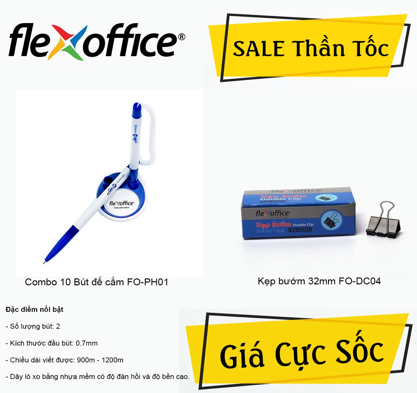 Combo 10 Bút đế cắm Flexoffice FO-PH01 và Kẹp bướm Flexoffice 32mm FO-DC04