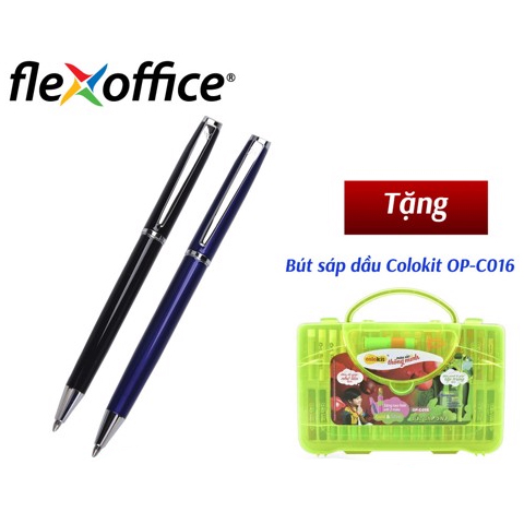 Combo 2 Bút bi cao cấp Flexoffice FO-060/VN mực xanh tặng kèm Bút sáp dầu Colokit OP-C016