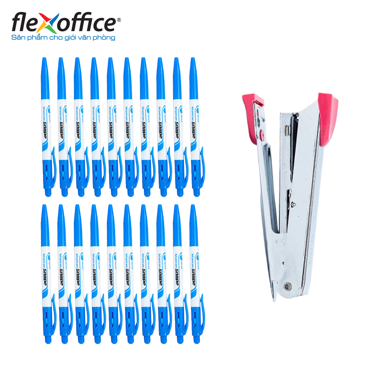 Combo 20 bút bi Flexoffice F0-023 và 1 Bấm kim số 10 FO-ST02