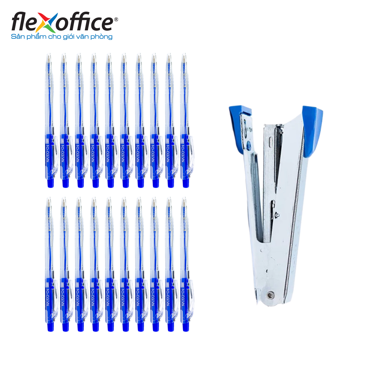 Combo 20 bút bi Flexoffice F0-03 và 1 Bấm kim số 10 FO-ST02