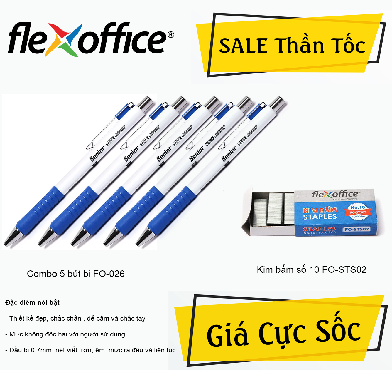 Combo 5 bút bi Flexoffice FO-026 và Kim bấm số 10 Flexoffice FO-STS02