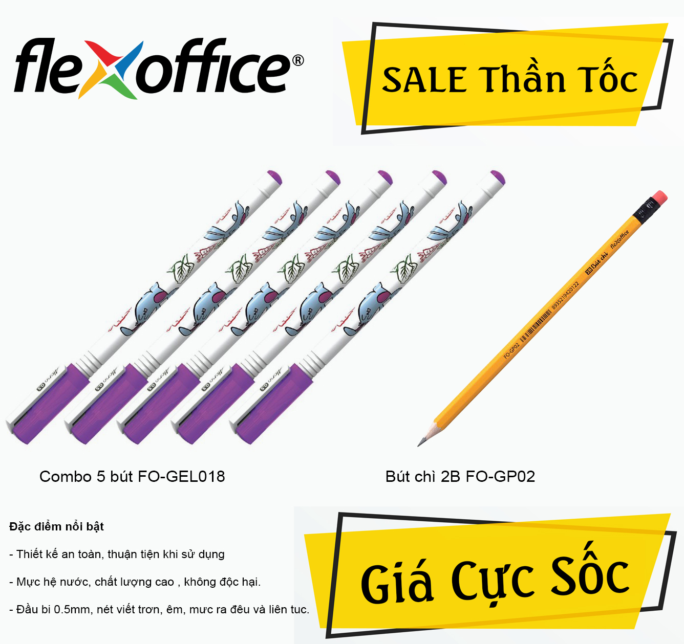 Combo 5 cây bút Bút Flexoffice FO-Gel018/VN và Bút chì gỗ 2B FO GP-02