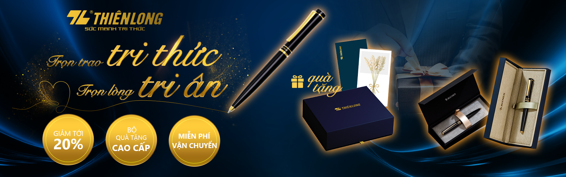 Bút bi cao cấp Thiên Long Bizner BIZ-16/40YEARS - Mạ vàng 22K (Tặng kèm 02 ruột mạ vàng)