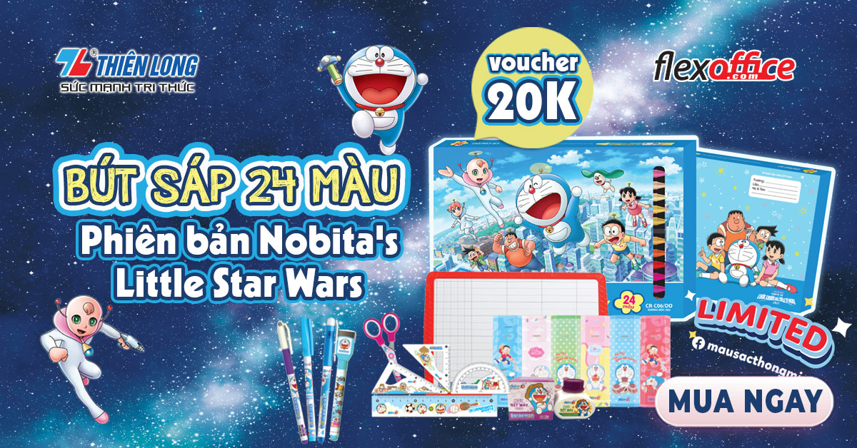 Sáp 24 màu Thiên Long Colokit Doraemon CR-C06/DO - Tiêu chuẩn Mỹ - Phiên bản Nobita's Sky Utopia 2023