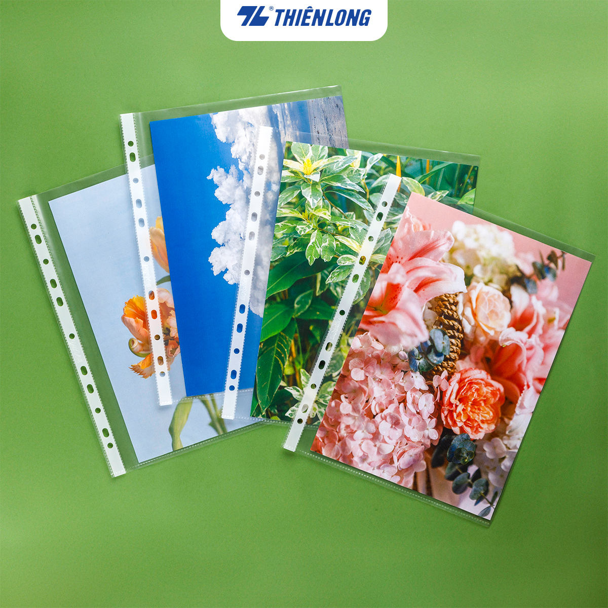 Bìa lỗ A4 FO-CS02 không có viền màu, là một sản phẩm thuộc nhóm Văn phòng phẩm, mang nhãn hiệu FlexOffice, sản xuất tại công ty Cổ Phần Thiên Long Long Thành.