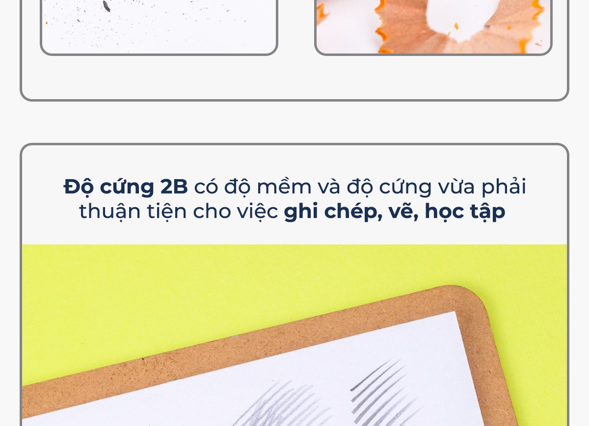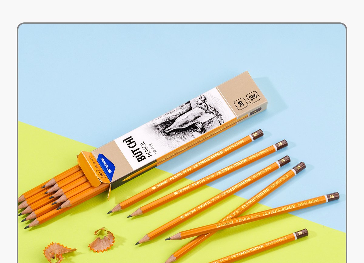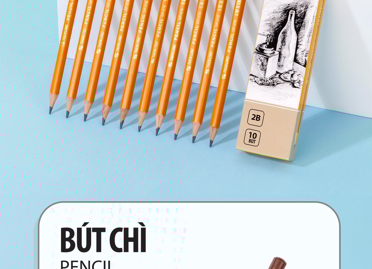 - Ruột chì loại 2B, mềm và đen. Nét đậm, lướt nhẹ nhàng trên bề mặt giấy.