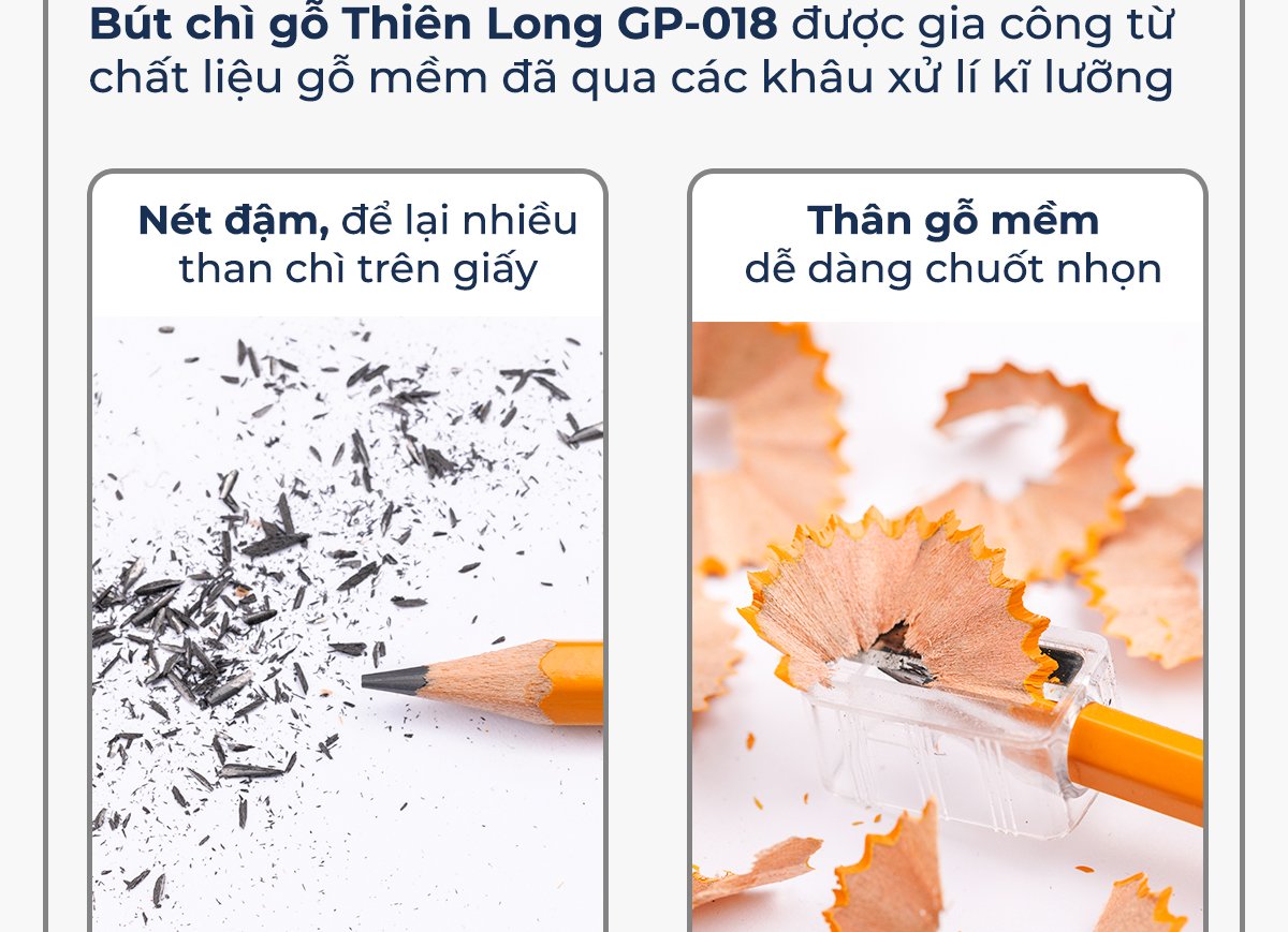 Bút chì gỗ Thiên Long GP-018 thích hợp cho các hoạt động như ghi chép, vẽ nháp, học tập. Đặc biệt thích hợp cho các em học sinh tiểu học.