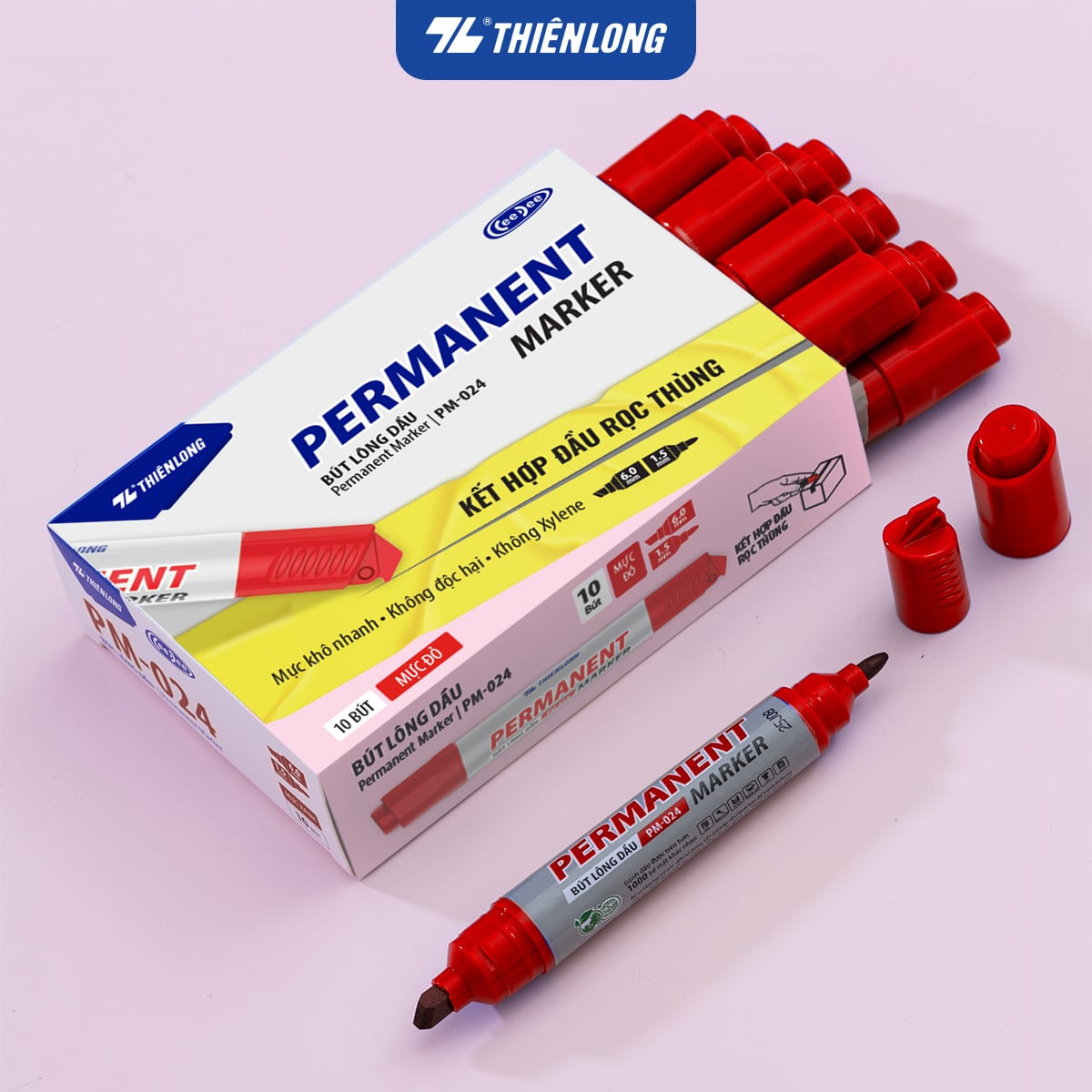 Bút lông dầu Thiên Long 2 đầu mực - Permanent Marker PM-024 - Kết hợp đầu rọc thùng