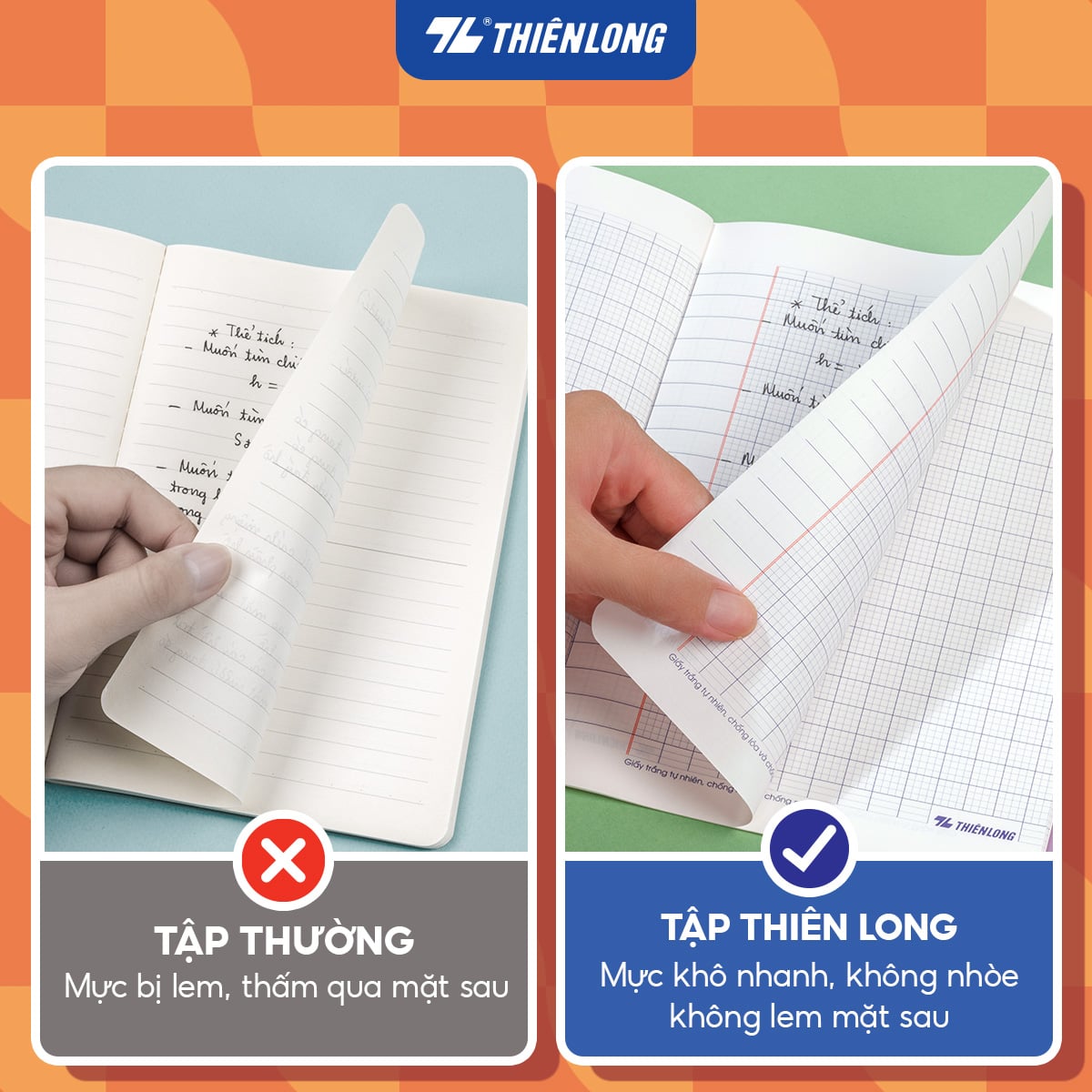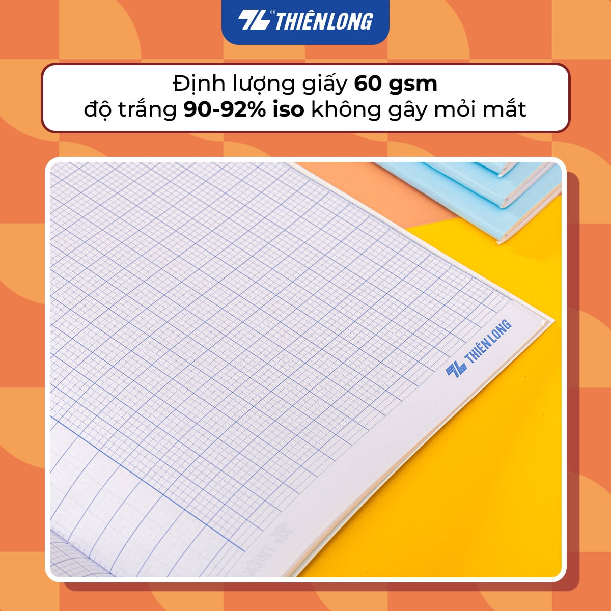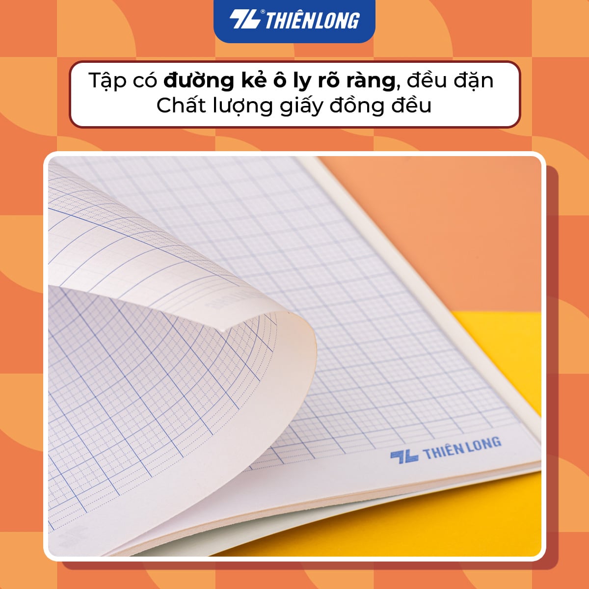 - Tập học sinh Thiên Long - Điểm 10 TP-NB039 (96 trang - 4 ôly vuông 2x2 mm) bìa cán vân, thiết kế hoàn toàn mới, màu sắc và bố cục ấn tượng, rất thích hợp với học sinh tiểu học.