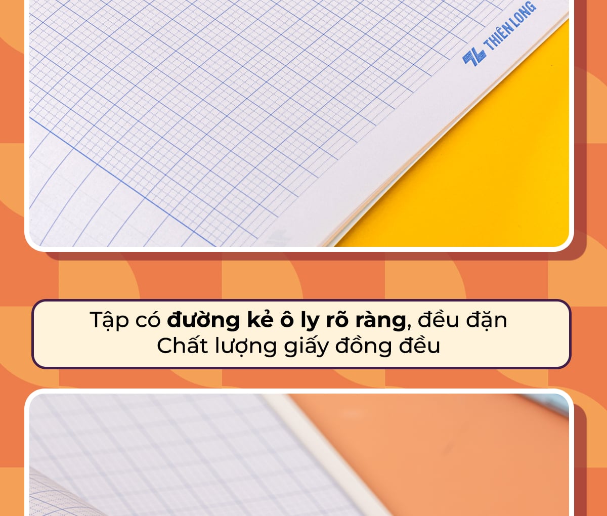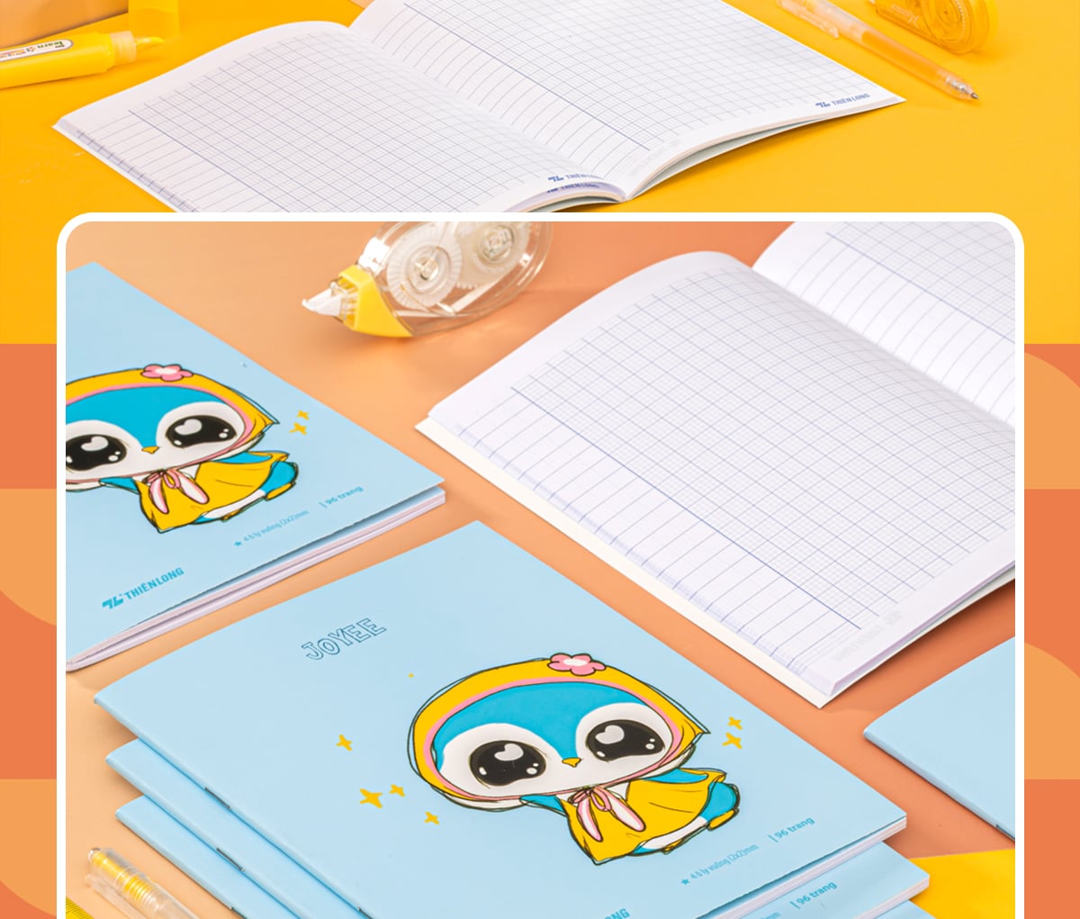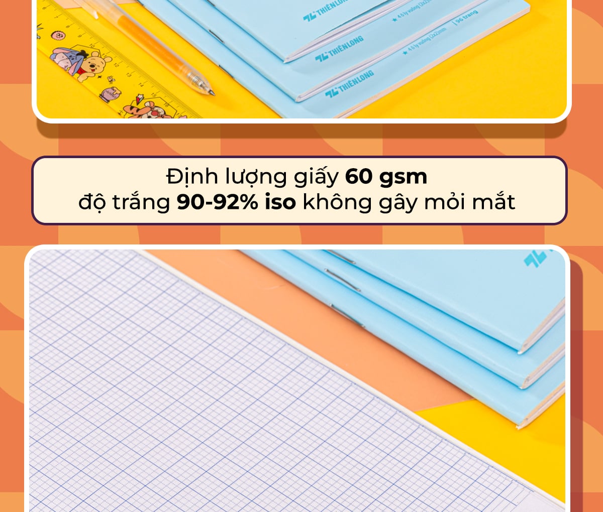 - Tập học sinh Thiên Long - Điểm 10 TP-NB039 (96 trang - 4 ôly vuông 2x2 mm) bìa cán vân, thiết kế hoàn toàn mới, màu sắc và bố cục ấn tượng, rất thích hợp với học sinh tiểu học.