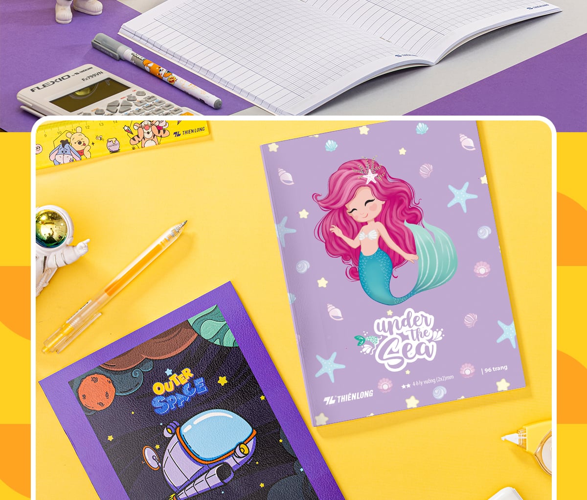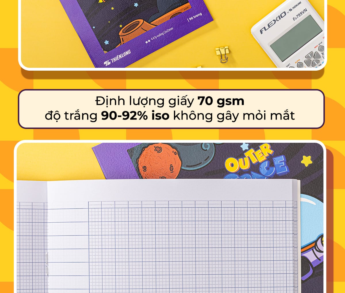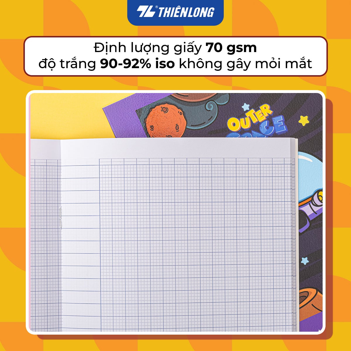 - Tập học sinh Thiên Long - Điểm 10 TP-NB044 (96 trang - 4 ô ly vuông 2x2 mm) thiết kế hoàn toàn mới, màu sắc và bố cục ấn tượng, rất thích hợp với học sinh tiểu học.