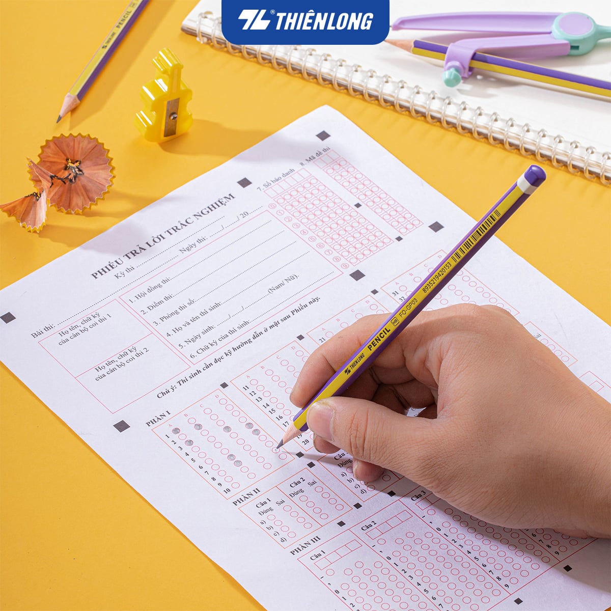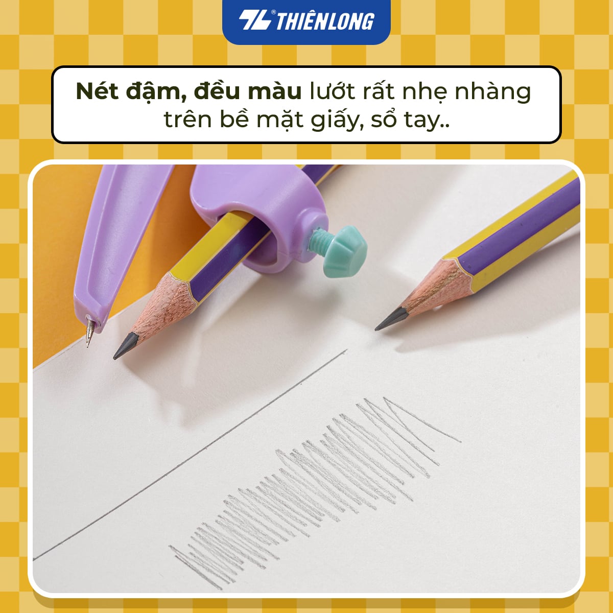 - Ruột chì loại HB, cứng và đen. Nét đậm vừa phải, ít gãy, dễ gôm tẩy.