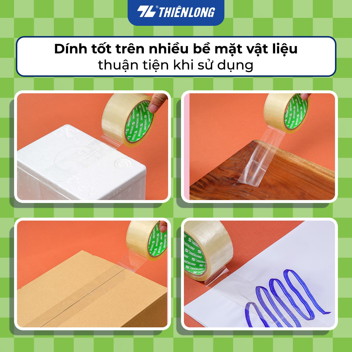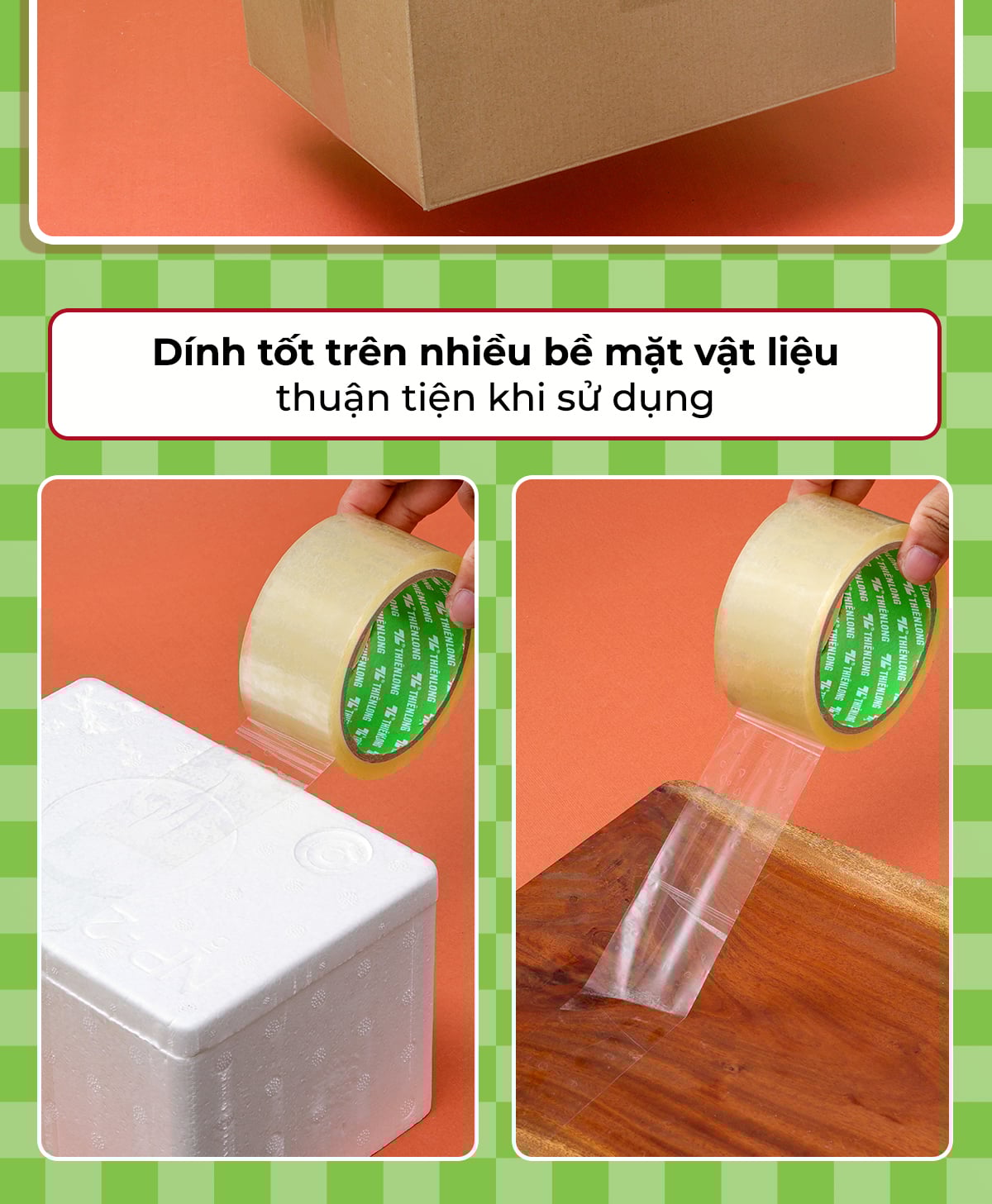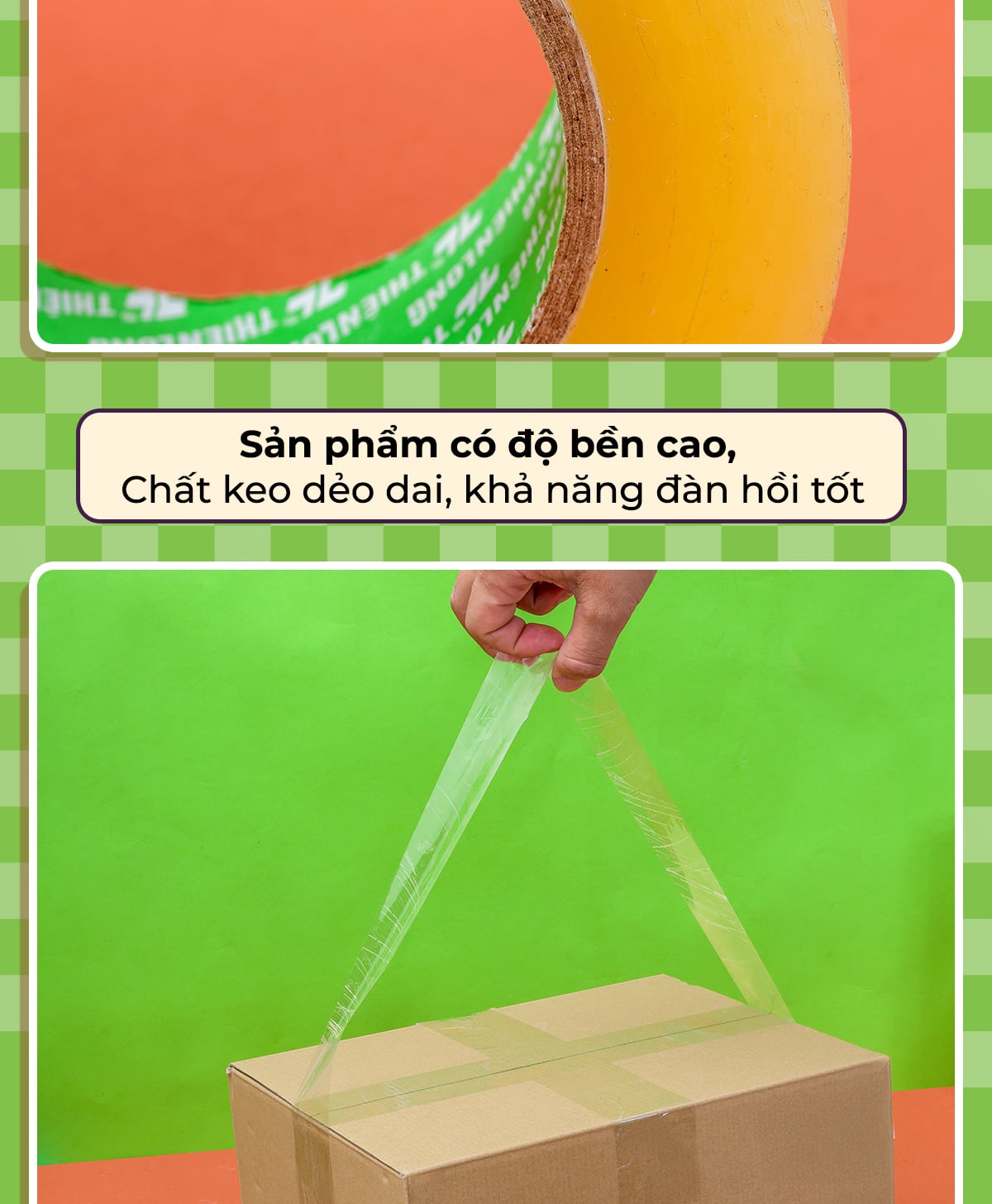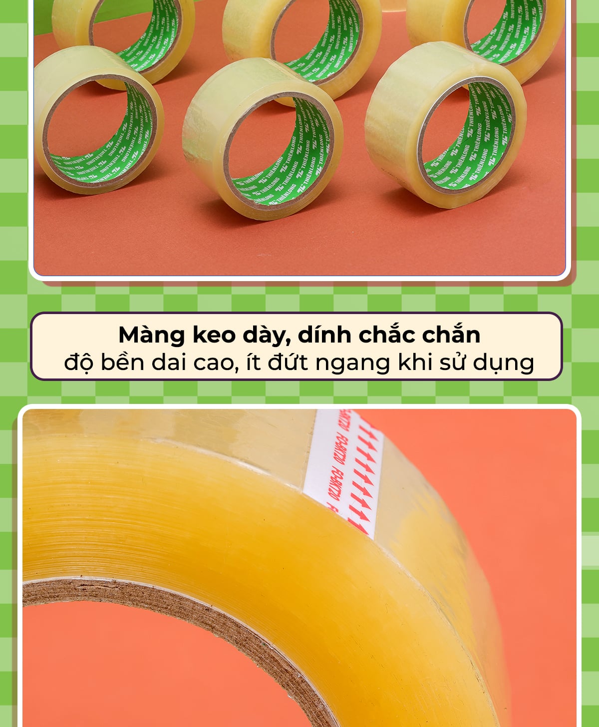 Băng keo trong chất lượng cao, độ bám dính tốt, phù hợp cho nhiều nhu cầu đóng gói, văn phòng và gia đình. Sản phẩm có độ trong suốt cao, giúp đảm bảo tính thẩm mỹ khi dán trên thùng carton, giấy tờ hoặc bao bì sản phẩm.