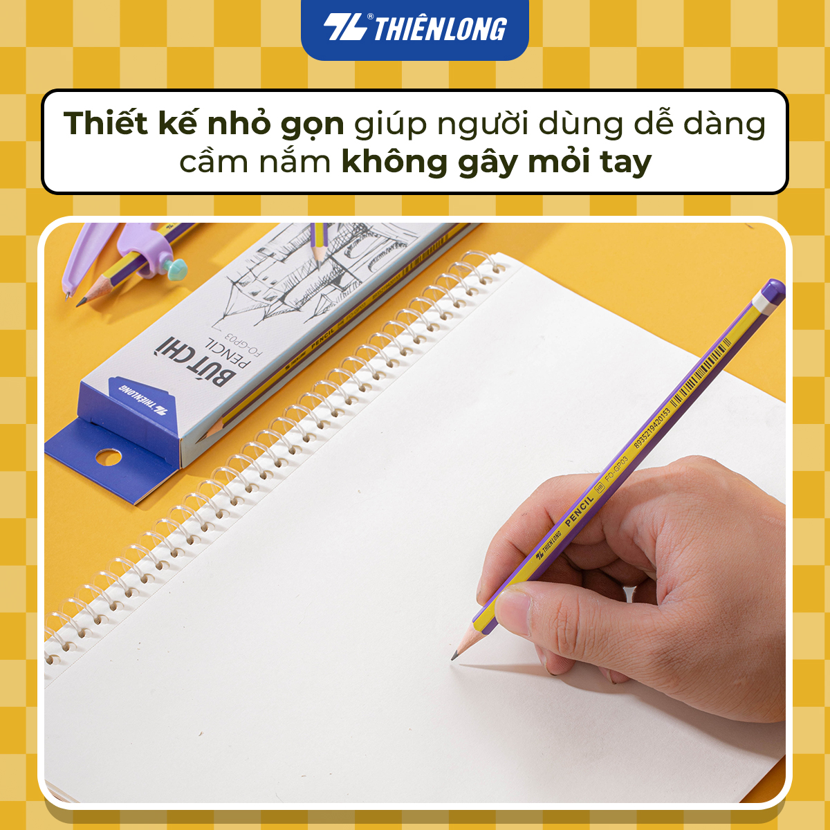 - Ruột chì loại HB, cứng và đen. Nét đậm vừa phải, ít gãy, dễ gôm tẩy.