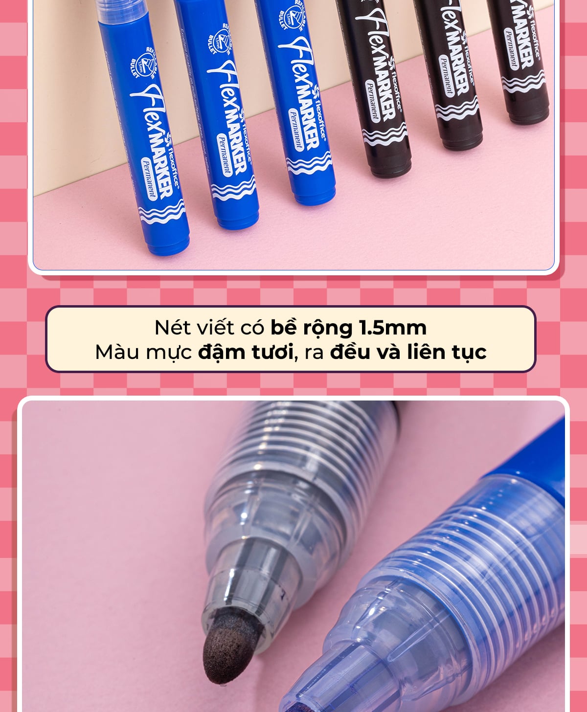 - Màu mực đậm tươi, mực ra đều và liên tục.
