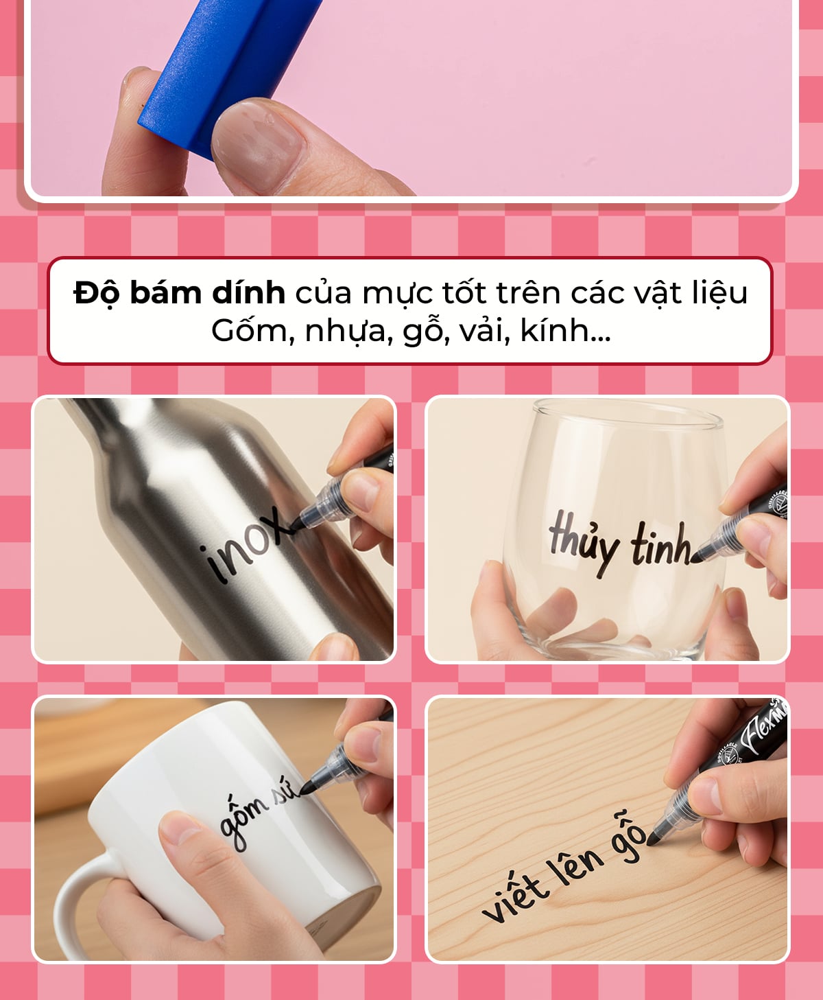 - Độ bám dính của mực tốt trên các vật liệu: Giấy, gỗ, da, nhựa, thủy tinh, kim loại, gốm, sứ, đĩa CD...
