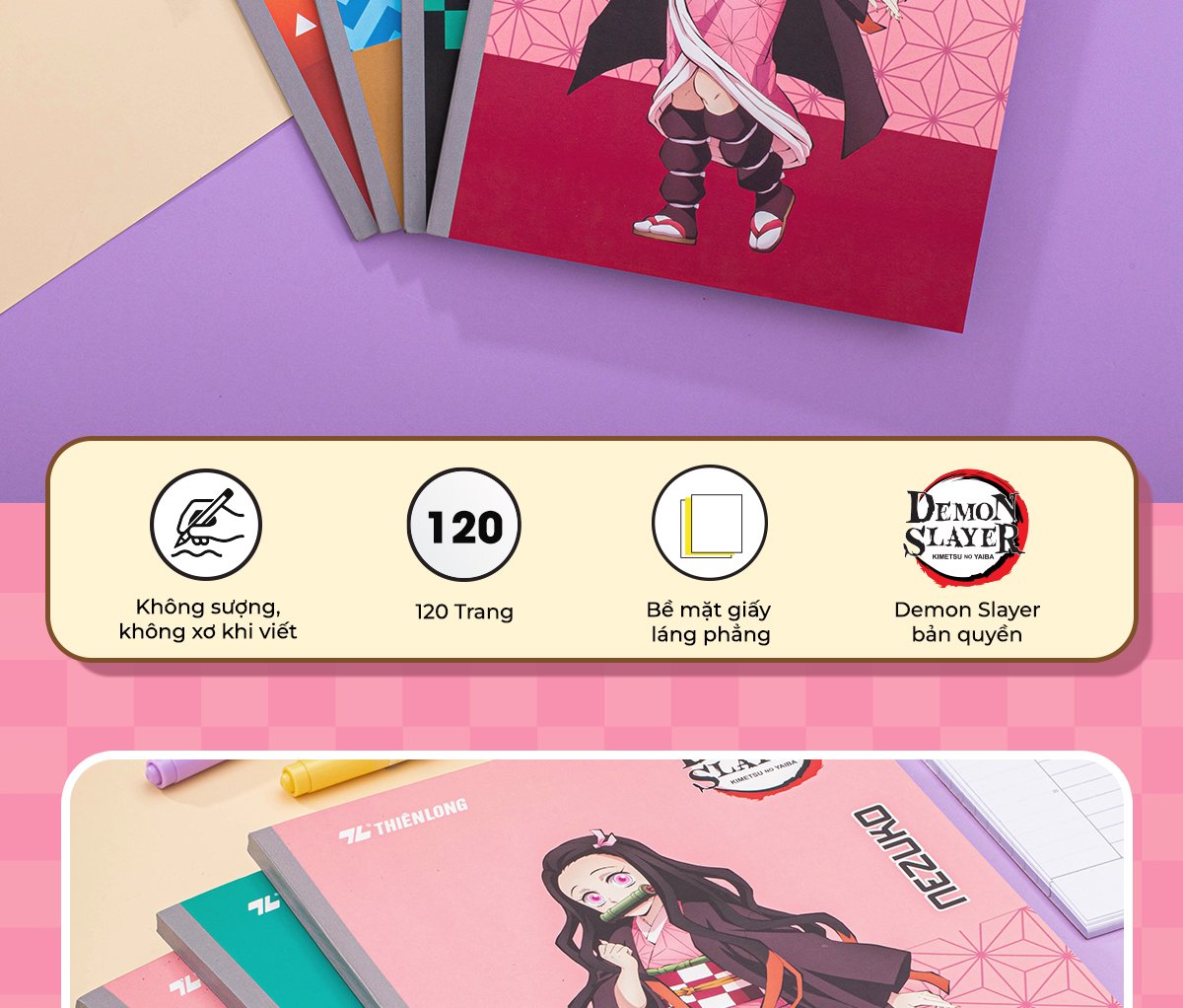 - Tập học sinh Thiên Long được sản xuất theo công nghệ hiện đại, màu sắc đẹp, sắc nét.
