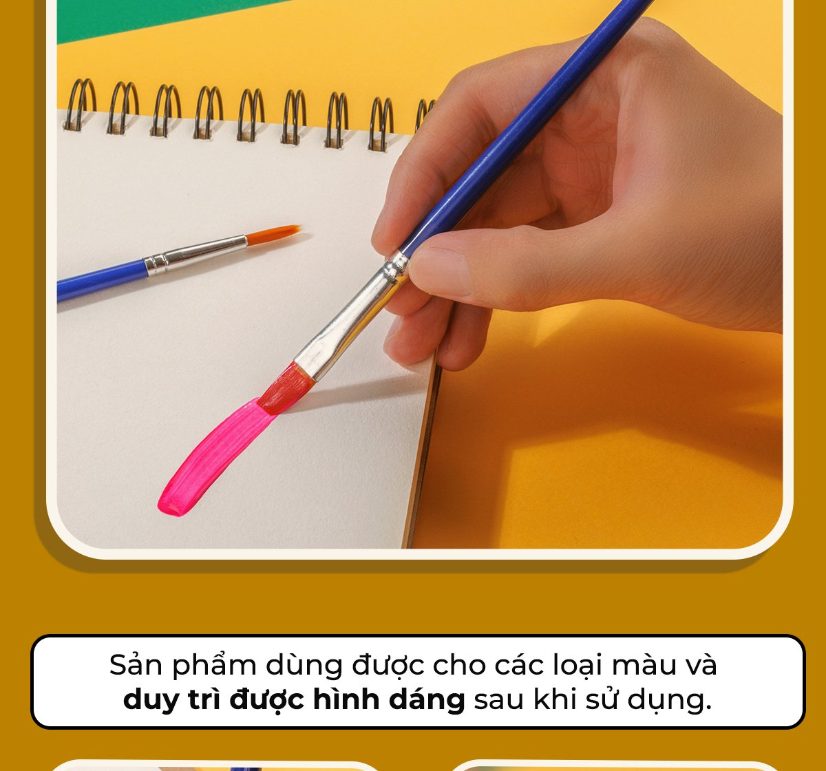 | Khuyến cáo | Tránh nguồn nhiệt, hóa chất. Không thích hợp cho trẻ dưới 3 tuổi. Không dùng cho sơn màu, sơn dầu và mực tàu. |